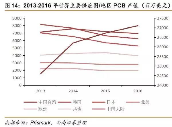 結論:我們一方面看好中國繼續在PCB 行業中扮演產銷大國角色;另一方面認為未來中國PCB 產業的市場競爭中,將出現產品高端化、企業規模化、產業鏈延伸、地域分布均勻化等特征,中國企業通過優化理念、實現技術超前升級,也將逐漸取得優勢,從而在產值大國之外,成為真正的電子強國。