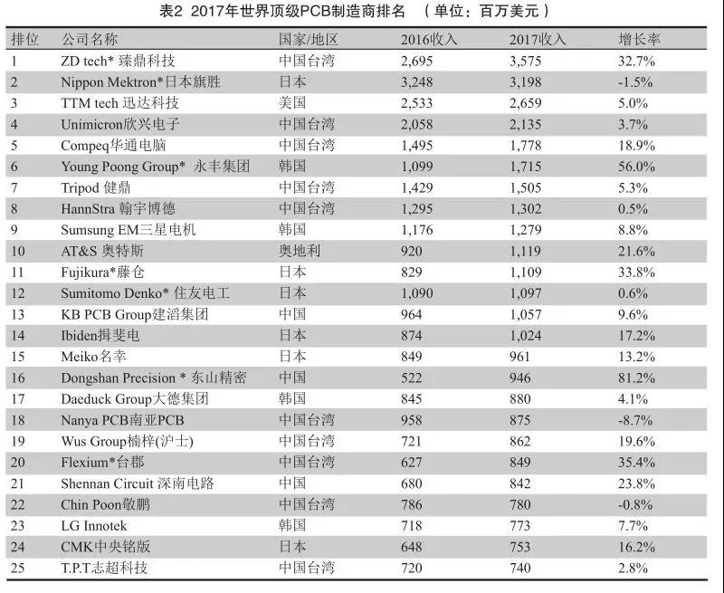 HDI廠帶你看2017年世界頂級PCB制造商排行榜