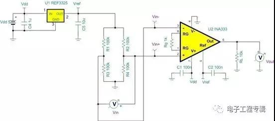 上圖是用來展示焊劑污染所造成結果的測試電路。由 2.5V 參考電壓激活的平衡惠斯頓接橋網絡可仿真高阻抗橋接傳感器。差分橋接傳感器輸出 VIN+ - VIN- 可連接至增益為 101V/V 的 INA333。在理想狀態下,由于橋接處于平衡狀態,因而 VIN+ - VIN- = 0V。但焊劑污染會造成實際橋接傳感器電壓隨時間慢慢漂移。