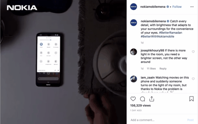 不過在該廣告片中呈現的效果與上述恰恰相反,諾基亞手機在黑暗環境下屏幕變亮,而在燈光亮起時屏幕變暗。