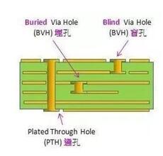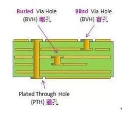 這個制作過程不能通過電路板黏合后再進行鉆孔的方式達成,必須要在個別電路層的時候就進行鉆孔操作,先局部黏合內層之后進行電鍍處理,最后全部黏合。由于操作過程比原來的導通孔和盲孔更費勁,所以價格也是最貴的。這個制作過程通常只用于高密度的電路板,增加其他電路層的空間利用率。