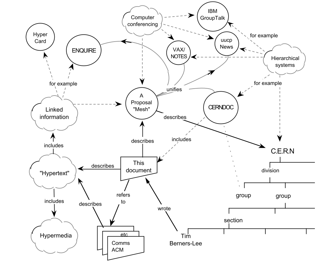 受到 memex 的啟發(fā),伯納斯·李發(fā)表了論文《關(guān)于信息化管理的建議》。隨后,他創(chuàng)建世上第一個(gè)網(wǎng)站 Info.cern.ch ,并花時(shí)間確保歐洲核子研究中心將萬維網(wǎng)技術(shù)在公共領(lǐng)域免費(fèi)開放,不設(shè)專利。他設(shè)想人人都可以創(chuàng)建自己的網(wǎng)頁,訪問他人的網(wǎng)頁。互聯(lián)網(wǎng)將是一個(gè)沒有控制中心的網(wǎng)絡(luò),會(huì)造就一個(gè)明達(dá)、互動(dòng)、寬容的世界公民共同體。