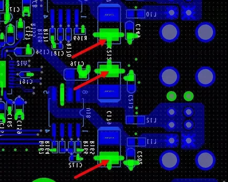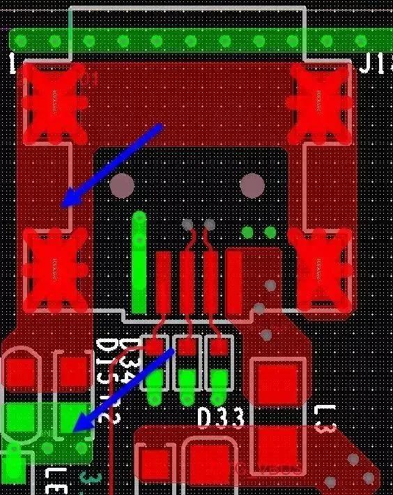 [6] shape 不能跨越焊盤,進入器件內部,特別地,表層大范圍覆銅。