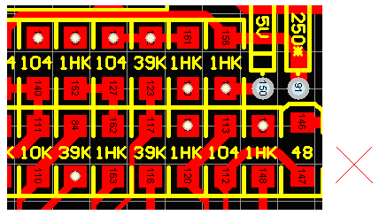 如此排版會給返修造成困難,返修時必須先拆數碼管,還有可能造成數碼管損壞。建議將數碼管底下的電阻排到Bottom面,如下圖: