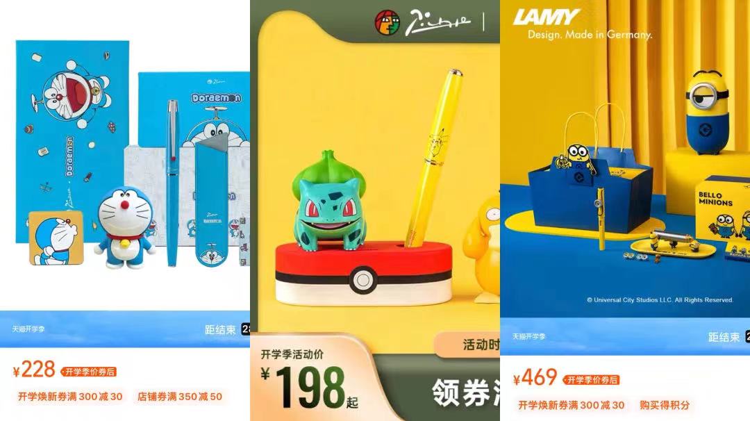 印有寶可夢(mèng)、哆啦A夢(mèng)、阿童木等知名動(dòng)漫人物形象的鋼筆