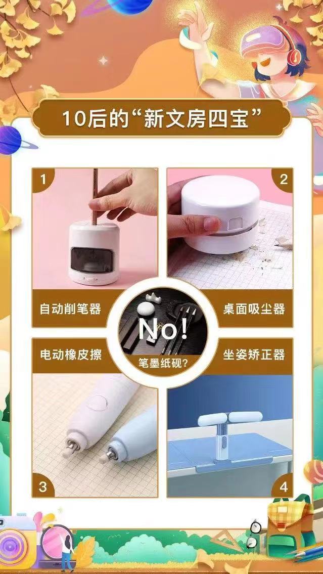 自動(dòng)削鉛筆、桌面吸塵器、電動(dòng)橡皮擦、坐姿矯正器