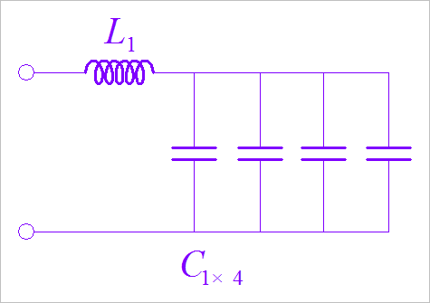 使用電路通斷器可以判定四個(gè)電容是并聯(lián)關(guān)系,與輸出電感呈現(xiàn)串聯(lián)諧振電路。