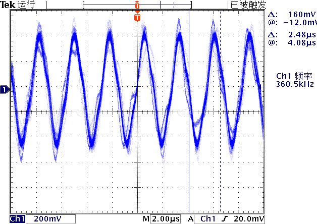 在 蘋(píng)果手機(jī)無(wú)線充電板外部電磁場(chǎng)測(cè)試[1] 使用工字型電感測(cè)試了充電線圈外部交變磁場(chǎng)的特性。在手機(jī)靠近充電器的過(guò)程中,工字型電感測(cè)量到的交變磁場(chǎng)為360kHz的近似正弦波的信號(hào)。