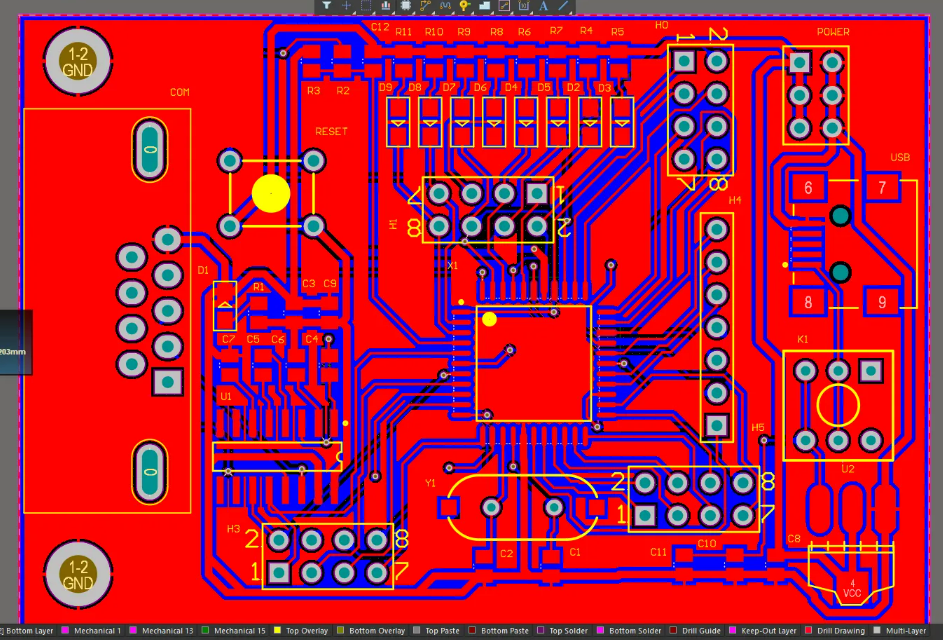 (1)銅走線(Track)線寬:單面板0.3mm,雙面板0.2mm;(2)銅箔線之間最小間隙:單面板0.3mm,雙面板0.2mm;(3)銅箔線距PCB板邊緣最小1mm,元件距PCB板邊緣最小5mm,焊盤距PCB板邊緣最小4mm;(4)一般通孔安裝元件的焊盤直徑是焊盤內徑直徑的2倍。(5)電解電容不可靠近發熱元件,例如大功率電阻、變壓器、大功率三極管、三端穩壓電源和散熱片等。電解電容與這些元件的距離不小于10mm。(6)螺絲孔半徑外5mm內不能有銅箔線(除接地外)及元件。
