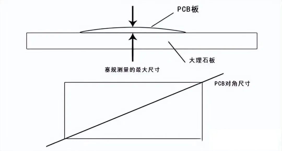 翹曲=單角翹曲高度/(PCB對(duì)角線長(zhǎng)度*2)*100%