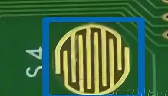 如果你拆過遙控器或計算器,你就應該看到過這個標記。導電按鍵由2個交錯的端子(但未連接)組成。當按下鍵盤上的橡膠按鈕時,兩個端子會連接,因為橡膠按鈕的底部時導電的。