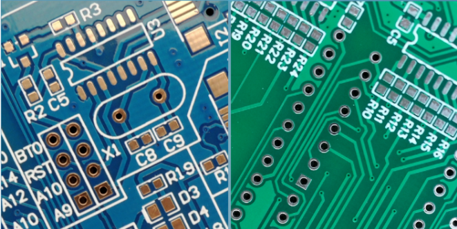 防焊油墨(Solder resistant /Solder Mask) :并非全部的銅面都要吃錫上零件,因此非吃錫的區(qū)域,會印一層隔絕銅面吃錫的物質(zhì)(通常為環(huán)氧樹脂),避免非吃錫的線路間短路。根據(jù)不同的工藝,分為綠油、紅油、藍(lán)油。