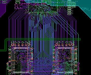 3、設(shè)置規(guī)則,開始走線。先從主芯片 BGA 開始出線,將 DDR4 的線先完成。DDR4以及主芯片拉線完成后可以先看一下內(nèi)存繞線是否有瓶頸。DDR的信號最多,而且速率高,比較敏感,是前期設(shè)計(jì)最需要著重評估的地方。然后開始外圍器件的布線。