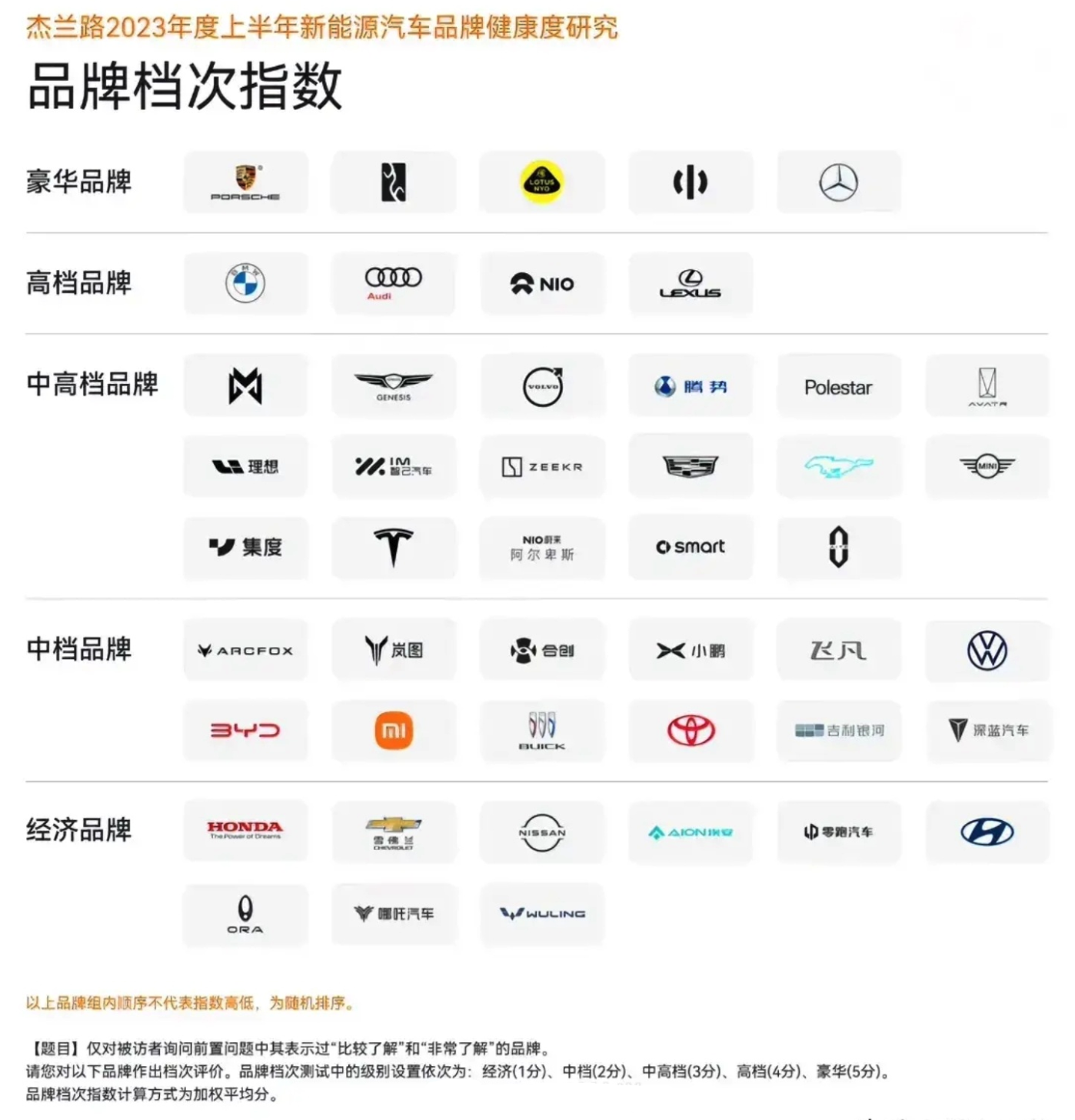 PCB廠了解到,根據(jù)@杰蘭路《2023年度上半年新能源汽車品牌健康度研究》報告,小米在汽車品牌中被打分為“中檔品牌”: