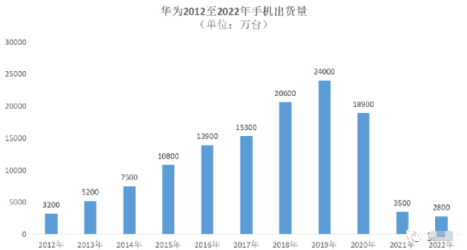 HDI廠講以下為2012年至2022年華為智能手機(jī)出貨量數(shù)據(jù):