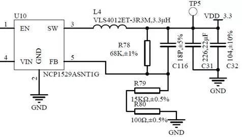 黃色圈注區(qū)域(R80,C116,R79,R78)是系統(tǒng)主電源3.3V DC-DC的負(fù)反饋及補(bǔ)償網(wǎng)絡(luò)(FB部分),如下圖所示。