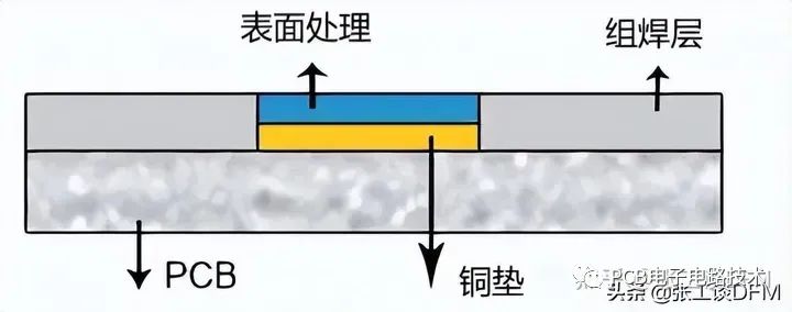 PCB 表面處理是 PCB 制造和組裝過(guò)程中最重要的步驟,具有兩個(gè)主要功能,一個(gè)是保護(hù)裸露的銅電路,另一個(gè)是在焊接時(shí)提供可焊表面元件到 PCB。如下圖所示,表面處理位于 PCB 的最外層,位于銅層之上,起到銅“涂層”的作用。