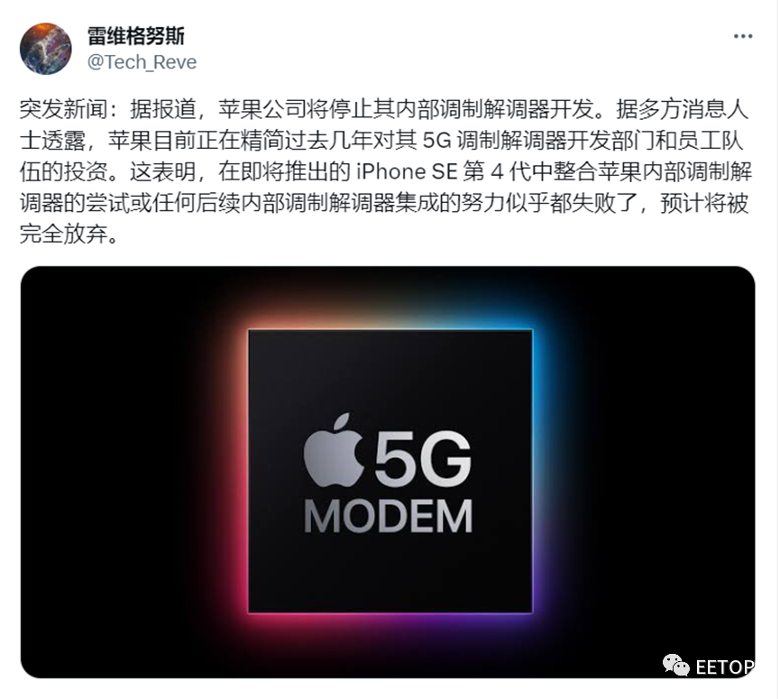 這一決定將給蘋果公司帶來巨大損失,因為蘋果公司多年來一直對這項技術進行巨額投入。此外,有消息人士@Tech_Reve表示,蘋果在開發內部5G基帶芯片的團隊在開發芯片方面面臨重大障礙,并且有不切實際的目標,沒有考慮過程中涉及的挑戰。