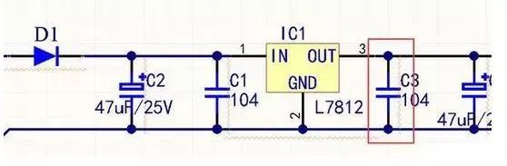 說白了就是把直流電源中的交流分量,通過電容耦合到電源地中,起到了凈化直流電源的作用。如圖C1為旁路電容,畫圖時候要盡量靠近IC1。