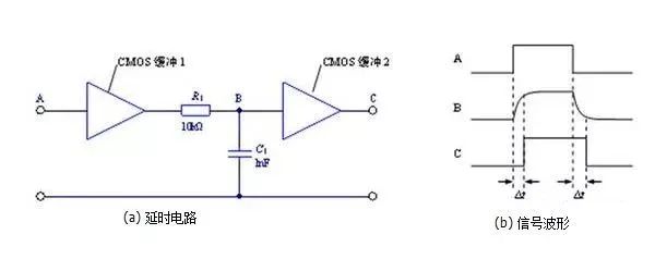 當(dāng)變大到一定程度時,緩沖2翻轉(zhuǎn),在輸出端得到了一個延遲的由低向高的跳變。