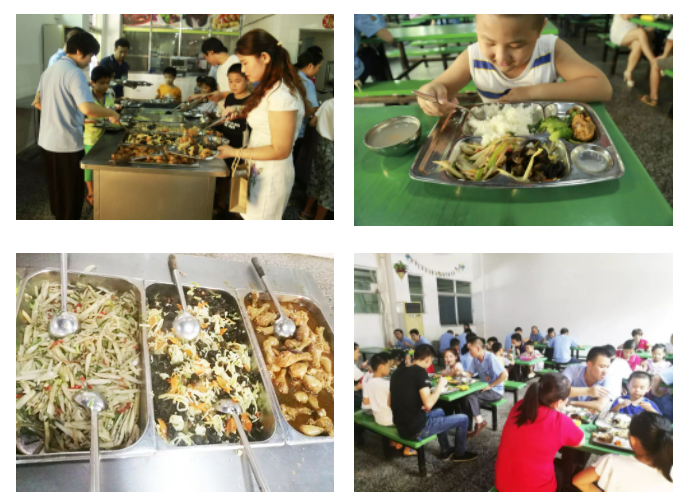 我們的食堂餐不止種類多,有葷有素、營養搭配,四菜一湯,而且供員工及家屬自主選擇,飯量比較大的還可以按自己的需求添加飯菜。小朋友還可以跟隨家長一同住宿,吃飯住宿兩不誤,真是太貼心了!