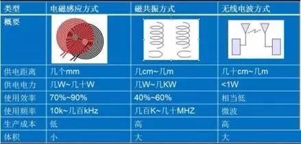 無線充電原理上的三種常見方式對比如下,從圖中可以看出,電磁感應式是目前轉換效率最高及體積最小的,最適合用于便攜設備中。