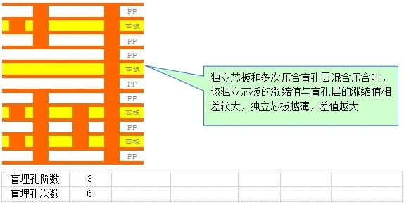 6、純機械鉆孔的雙核雙向增層式盲/埋孔階數結構圖(含假層設計)