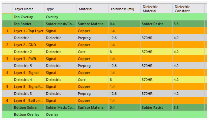 為了簡化BGA扇出和布線難度,方案使用6層板進行疊層設(shè)計。