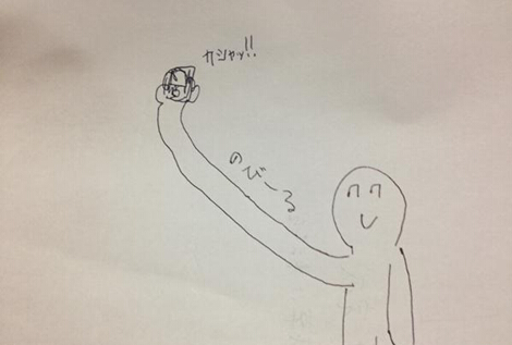 這不?島國一個熱愛自拍的宅男就腦洞大開的發明了這個。在開工做這個進階版的自拍神棍之前,這個嚴肅的boy畫了一張草稿。