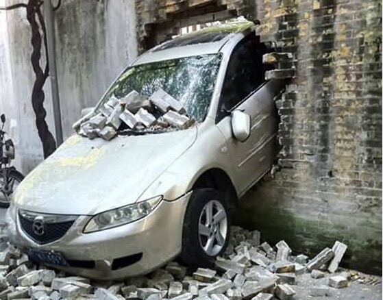 只是這穿墻術也太絕了,留那么大個窟窿?。?!這一腳油門兒也蠻賣力滴…