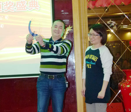 圖為深聯HDI線路板廠銷售代表現場領獎照片。作為闊展科技的主要供應商之一,深聯電路主要為其提供2、4、6層PCB板用于其通訊WIFI產品。