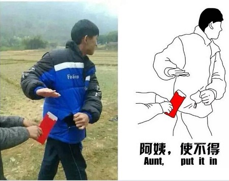 如果拜完年還是沒有討到壓歲錢,那就巧妙做些“小動作”,例如從口袋里掏出紅包。話說為了紅包還是有人愿意拼的,春節(jié)催生了一群實力派演員…