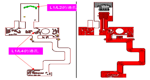 ●此類板子的制作難點:有兩次鉆孔,L1層線路需要對兩次鉆出的孔對位,同時不允許出現孔破。如下圖: