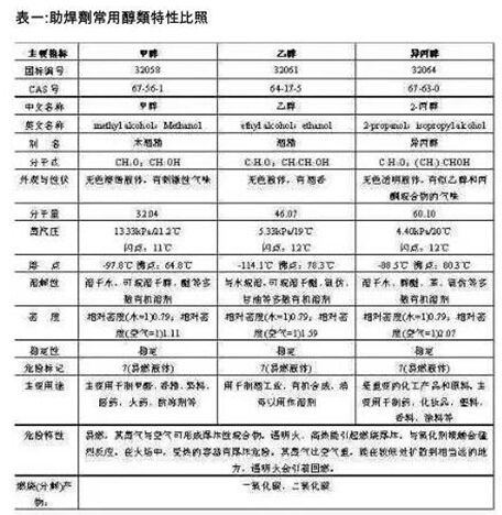 除水基PCB助焊劑或某些特屬PCB助焊劑外,常用PCB助焊劑的溶劑部份多是以醇類物質(zhì)為主體,主要有甲醇、乙醇及異丙醇三種,因?yàn)榧状嫉亩竞π裕捌湓赑CB助焊劑中的相對(duì)不穩(wěn)定性,單獨(dú)使用甲醇作為單一溶劑的較少,因此使用乙醇、異丙醇或異丙醇與甲醇混合溶劑的廠家較多。醇類物質(zhì)本身具有易燃易爆的特性,參照下面三種醇類物質(zhì)的性能參數(shù)對(duì)照表(表一),三種醇的閃點(diǎn)都相差不多,都在11-12℃,而其蒸汽壓分別是:甲醇為13.33kPa/21.2℃,乙醇為5.33kPa/19℃,異丙醇為4.40kPa/20℃,由此可見,在相同的操作環(huán)境下,甲醇的可燃(或可爆)性能最強(qiáng),其次是乙醇,最弱是異丙醇。在PCB助焊劑的配比中,通過不同物質(zhì)(特別是阻燃劑)的添加,可將PCB助焊劑本身的閃點(diǎn)進(jìn)行提升,一般PCB助焊劑閃點(diǎn)可升至20.8℃左右,這也是為什么PCB助焊劑的閃點(diǎn)并不等同于溶劑閃點(diǎn)的原因所在。因此可以理解,在PCB助焊劑中添加了阻燃劑,比沒有添加阻燃劑的產(chǎn)品,其易燃(或易爆)的可能性要低一些。