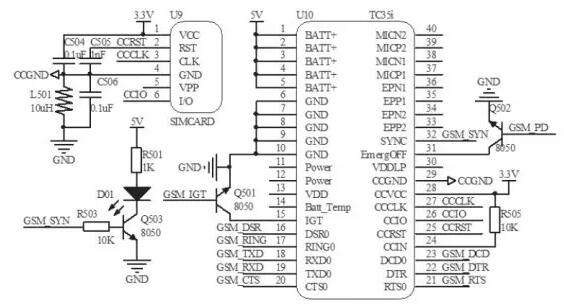 GSM模塊電路如圖2所示,該電路選用西門子的雙頻工業(yè)級GSM模塊TC35i,該電路是在主控制器的控制下向車主手機(jī)發(fā)送消息,同時接收車主的相關(guān)控制命令。