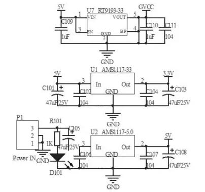 電路電路如圖6所示,由汽車蓄電池提供12V電源電壓,通過三端穩(wěn)壓器轉(zhuǎn)換成所需的各種電壓。