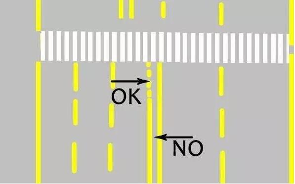 在遇到斑馬線的路口時,必須得超過斑馬線才能轉向動作,不要在斑馬線區域內進行操作。