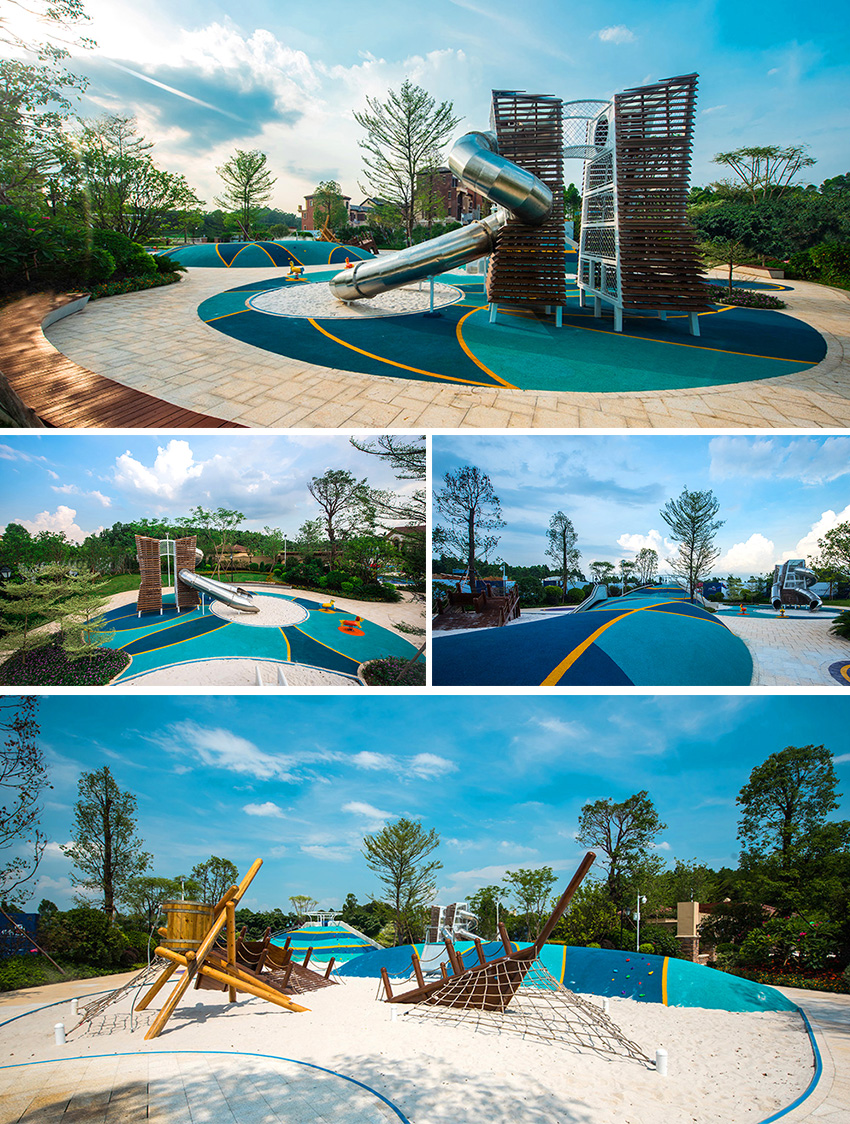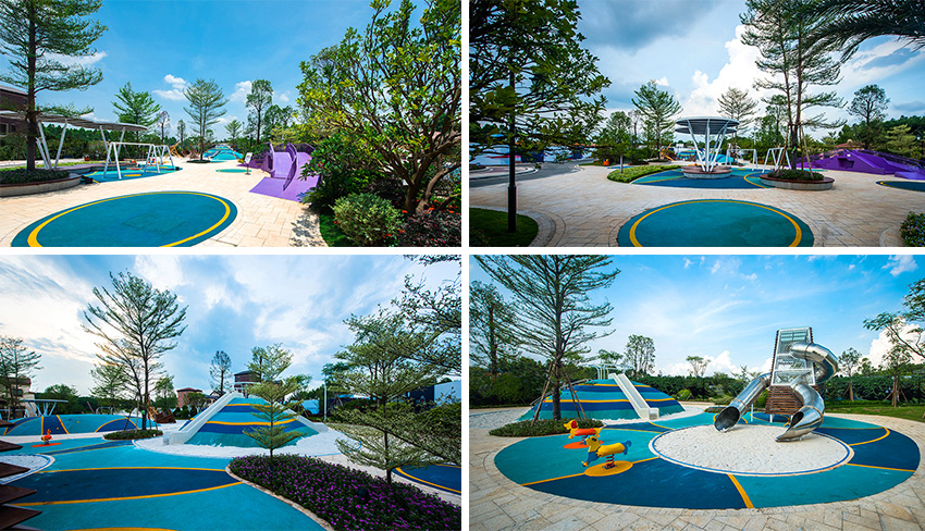 佛山云東海地區(qū)自古以來就水面彌漫百里,稱之“古云東海”。云東海高爾夫花園洛嘉兒童主題樂園以水作為核心元素進(jìn)行發(fā)想,以創(chuàng)造五彩泡泡家園夢幻旅程為設(shè)計核心理念。設(shè)計師在這里用五彩泡泡的概念實現(xiàn)了大小朋友們的夢想,利用非動力兒童游樂設(shè)施的概念打造兒童游樂場,為孩子們提供可持續(xù)快樂!