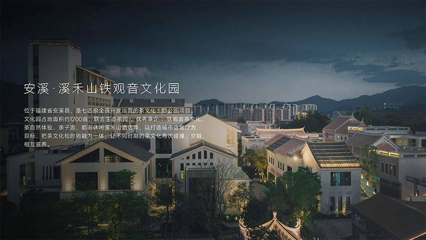 位于福建省泉州安溪縣,占地面積約1200畝,是七匹狼全資開發運營的集文化展示、觀光體驗、科普教育、休閑度假于一體,以鐵觀音茶文化為主題的大型綜合生態旅游示范區。
