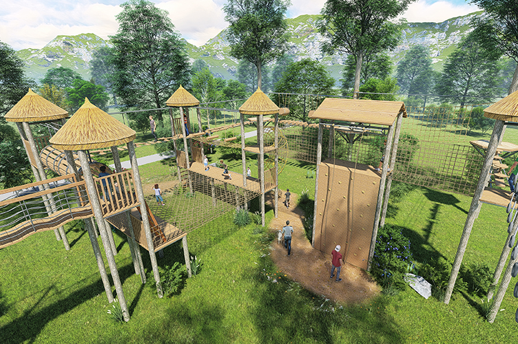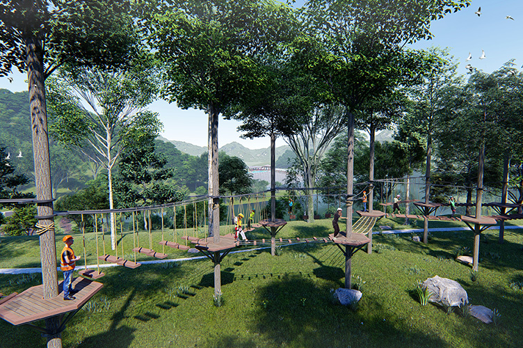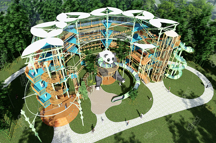 本項目適用于各種親子主題類的樂園,巧妙運(yùn)用“熊貓”IP造型設(shè)計,集拓展、探險、滑道、飛索、蹦極、不銹鋼滑梯、攀巖、爬網(wǎng)等46種不同運(yùn)動體驗的文化主題項目,結(jié)合“大灰熊”IP形象,融入相關(guān)設(shè)計元素,打造差異化的網(wǎng)紅IP主題性運(yùn)動拓展?fàn)I地綜合體。