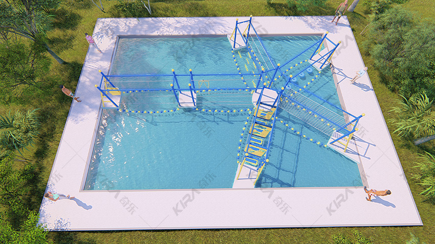 水上拓展探險類項目集親水性、趣味性、互動性為一體,通過不同的水上拓展關卡鍛煉參與者的肢體協(xié)調能力和平衡能力。水上拓展探險類項目布局設計不同,多種配色自由選擇,模塊可以自由組合,由多個不同的水上障礙關卡排列組合而成,帶給游客清涼一夏的水上娛樂體驗。