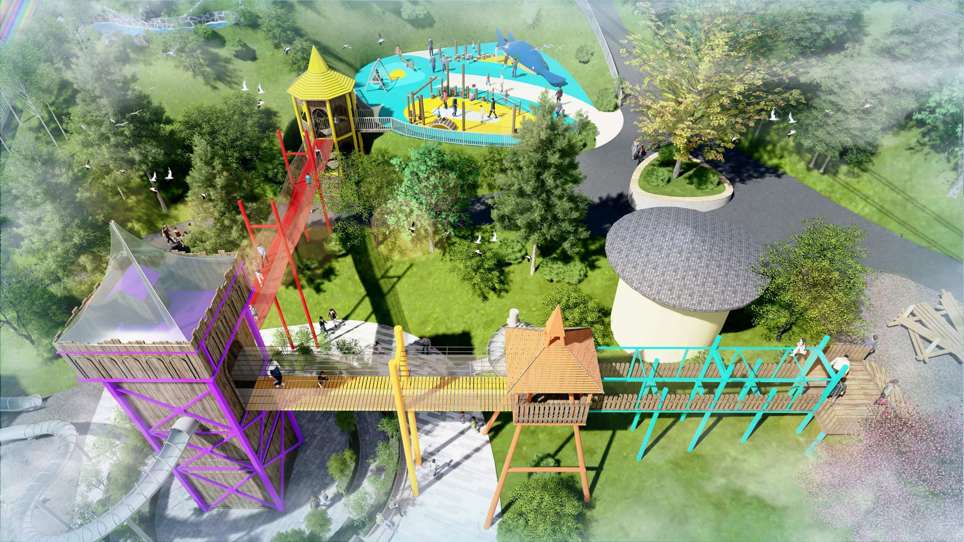 云頂平臺(tái)除了為景區(qū)提供基礎(chǔ)配套設(shè)施以外,同時(shí)在項(xiàng)目空間布局方面充分兼顧了游樂(lè)體驗(yàn)與觀光特色,打造令游客得到休閑放松與新潮體驗(yàn)的多功能戶(hù)外娛樂(lè)平臺(tái),多元化游樂(lè)空間動(dòng)線融合智慧創(chuàng)新技術(shù),將項(xiàng)目趣味性、挑戰(zhàn)性、娛樂(lè)性巧妙結(jié)合起來(lái),讓玩家樂(lè)在其中,從而獲得更好的體驗(yàn)。